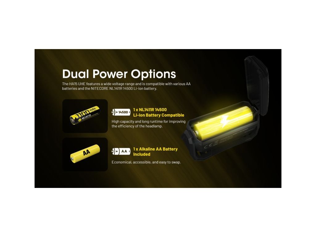 NITECORE Čelovka HA15 UHE s akumulátorem NL1411R - yellow / black (NC-HA15R)