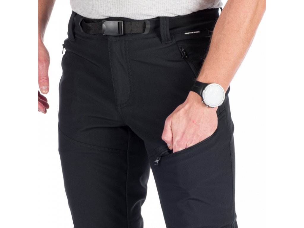 Kalhoty z třívrstvého softshellu s parametry vodního sloupce a prodyšnosti membránou 10 000 mm H₂O / 5 000 g/m²/24 hod. a hydrofobní úpravou jsou ideálním společníkem i do outdoorových podmínek. Zesílené části, předtvarovaná kolena pro větší pohodlí při pohybu, nastavitelná šířka dolního okraje, pasu a praktické kapsy na zip z nich dělají nenahraditelného parťáka na hory. Kalhoty jsou opatřeny ekologickou voděodolnou DWR úpravou bez použití PFC látek. Materiál: 94 % Polyester, 6 % Spandex