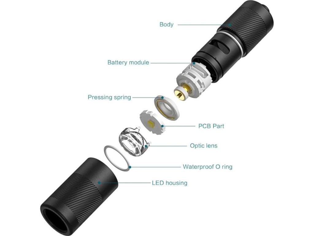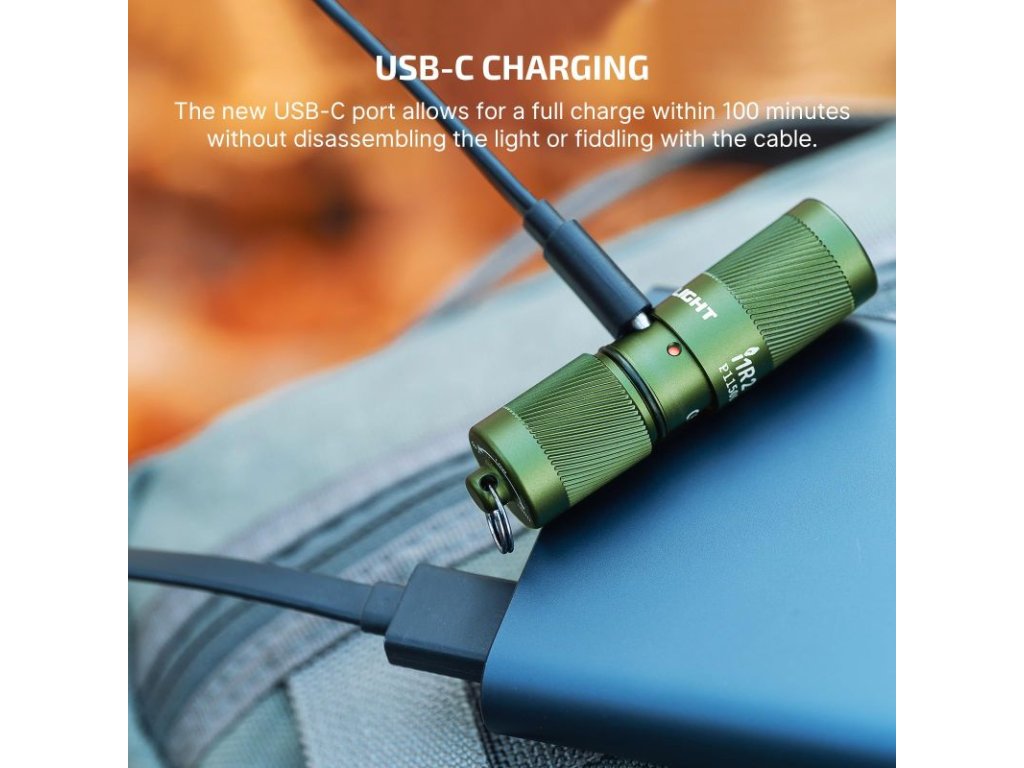 Integrovaná lithium-iontová baterie s kapacitou 130 mAh umožňuje svítit až 12 hodin a dobíjí se přímo přes moderní USB-C port, což je rychlé a pohodlné řešení bez nutnosti rozebírat svítilnu. Plné nabití trvá přibližně 100 minut. Díky své váze pouze 22 g a délce 5,13 cm je Olight i1R 2 Pro ideálním EDC světlem, které se vejde na každý klíč nebo do kapsy. Odolné tělo z letecké hliníkové slitiny je nárazuvzdorné (pád z 1,5 m) a splňuje normu vodotěsnosti IPX8.