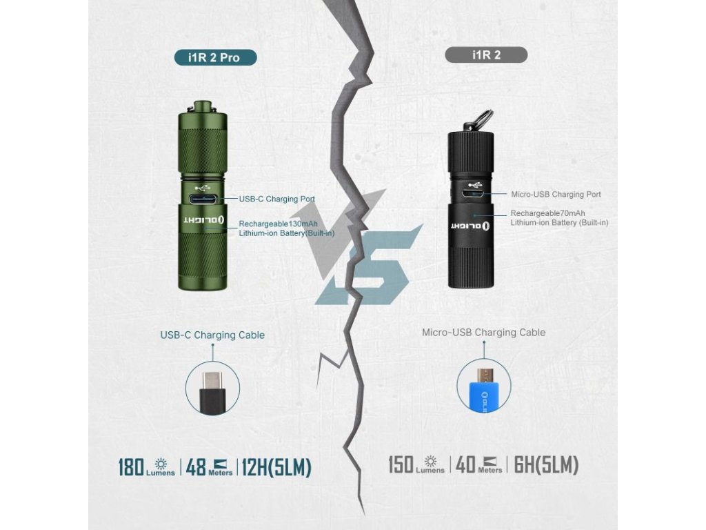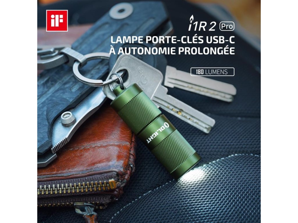 Olight i1R 2 Pro je kompaktní nabíjecí svítilna na klíče, která přináší vysoký výkon v miniaturním balení. Jde o vylepšenou verzi populárního modelu i1R 2 EOS. Využívá výkonnou CSP LED diodu v kombinaci s TIR optickou čočkou, která vytváří jemný a rovnoměrný paprsek. Díky jednoduchému otočnému mechanismu je možné přepínat mezi dvěma režimy – 5 lm pro nenápadné osvětlení a 180 lm pro silný světelný výkon s dosvitem až 48 metrů.