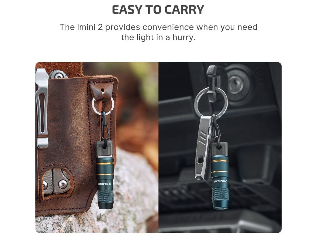 Olight Imini 2 je ultra-kompaktní svítilna na klíče, která navzdory miniaturní velikosti přináší výkon 50 lumenů a dosvit 21 metrů. Díky magnetickému držáku je možné svítilnu jednoduše odepnout a okamžitě aktivovat, nebo ji uchytit na kovový povrch a pracovat hands-free.