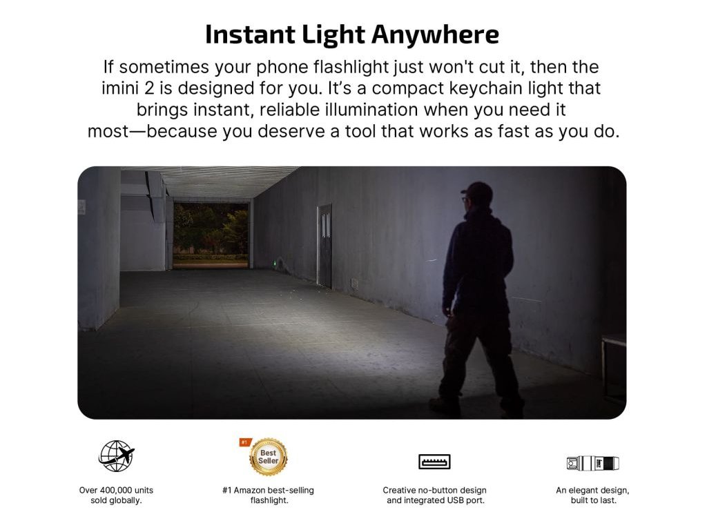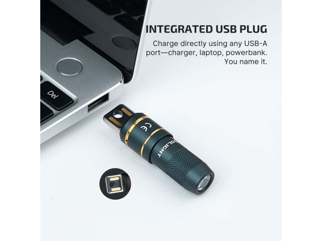 Integrovaný USB nabíjecí konektor umožňuje přímé nabíjení bez nutnosti použití kabelu – stačí zasunout svítilnu do jakéhokoliv USB portu. Stav nabíjení indikuje LED kontrolka. Olight Imini 2 je vyrobený z odolného hliníkového těla s protiskluzovou texturou a díky IPX6 voděodolnosti a nárazuvzdornosti je spolehlivým pomocníkem pro každodenní použití.