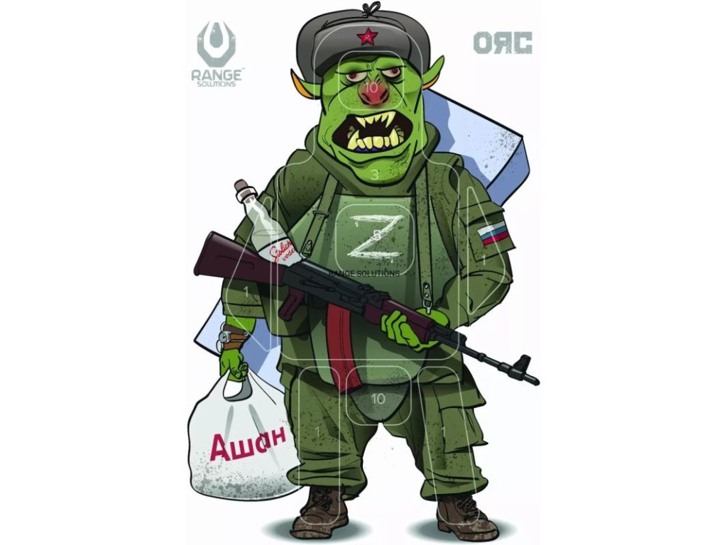Orc Shooting Target, určený pro rekreační střelbu. Představují vtipnou karikaturu ruského orkského vojáka.