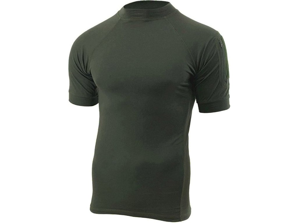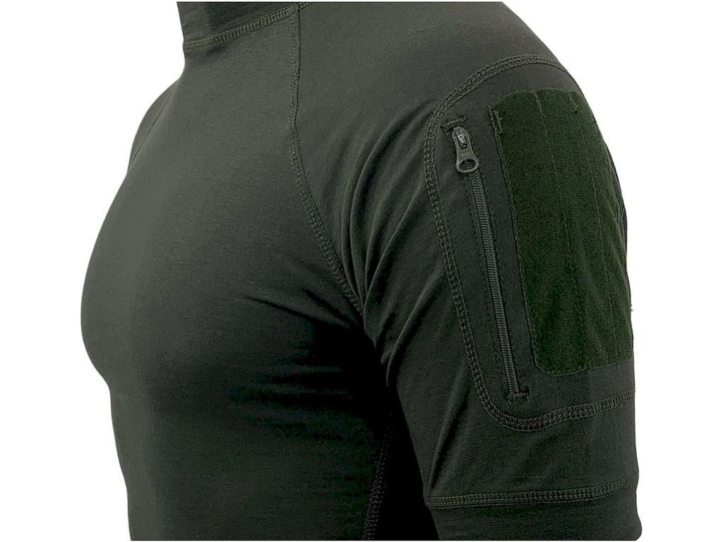 Pohodlné tričko s vysokým límcem a krátkými rukávy v černé barvě. Vyrobené z kombinace bavlny a spandexu. Materiál je elastický, příjemný na dotek, lehký a prodyšný. Na rukávu je našitá malá kapsa na YKK zip. Na levém rameni je také panel na suchý zip, na který lze připevnit nášivku. Tričko je vybavené měkkou páskou kolem krku, která zabraňuje odírání krku a nadměrnému vytahování.