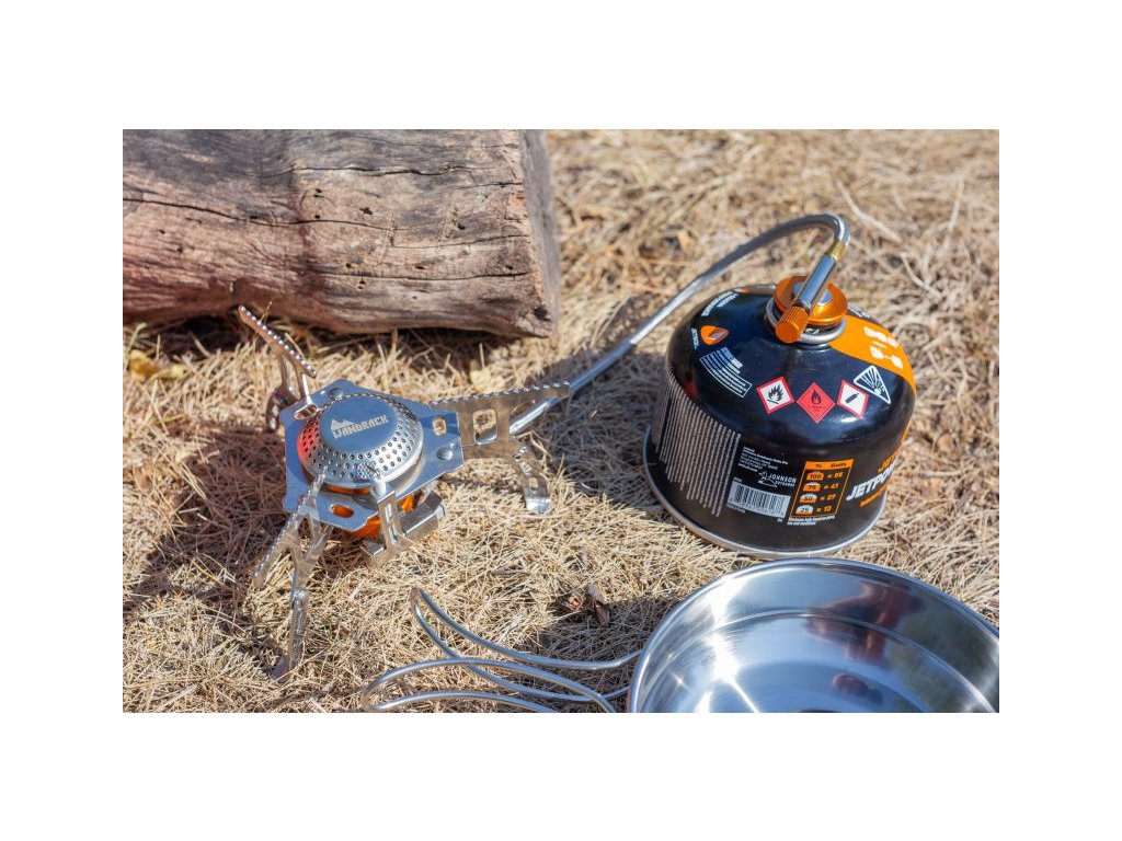 Wandrack plynový vařič je skvělým společníkem na vaše dobrodružství. Díky jeho kompaktním rozměrům a praktickému pouzdru ho snadno vezmete s sebou do batohu. Vařič stačí připojit na standardní plynovou kartuši a je připravený na vaření. Má v sobě zabudovaný piezo zapalovač, takže nemusíte s sebou nosit zápalky či zapalovač. Vařič je dodáván v jednom kuse, takže je ihned připravený k použití.