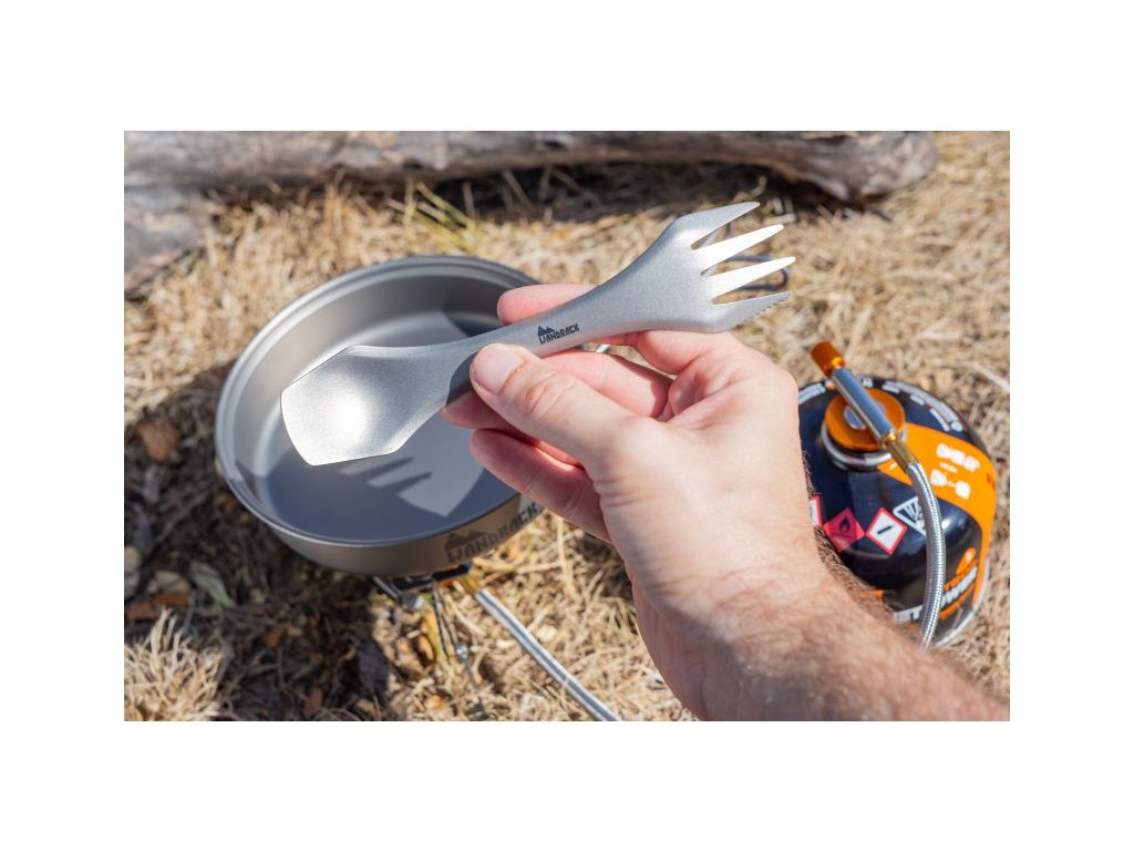 Praktický multifunkční příbor značky Wandrack v sobě skrývá vidličku, lžíci i nůž. Spork je vyrobený z titanu, takže jde o odolný a lehký příbor, který bude věrným společníkem na vašich dobrodružstvích. Dodávaný je i s praktickým přepravním sáčkem, který ochrání spork i zbytek vašich věcí před poškrábáním či zašpiněním.