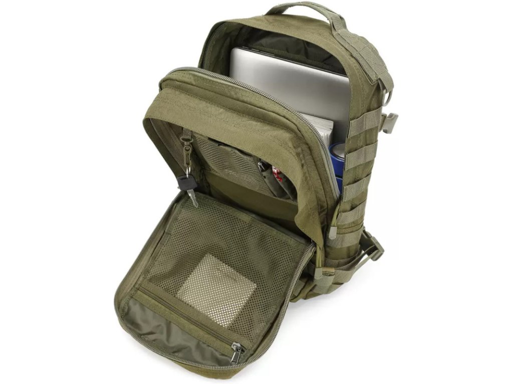 » MOLLE systém: možnost připojení dalších kapes, pouzder nebo výbavy na boky a předek batohu