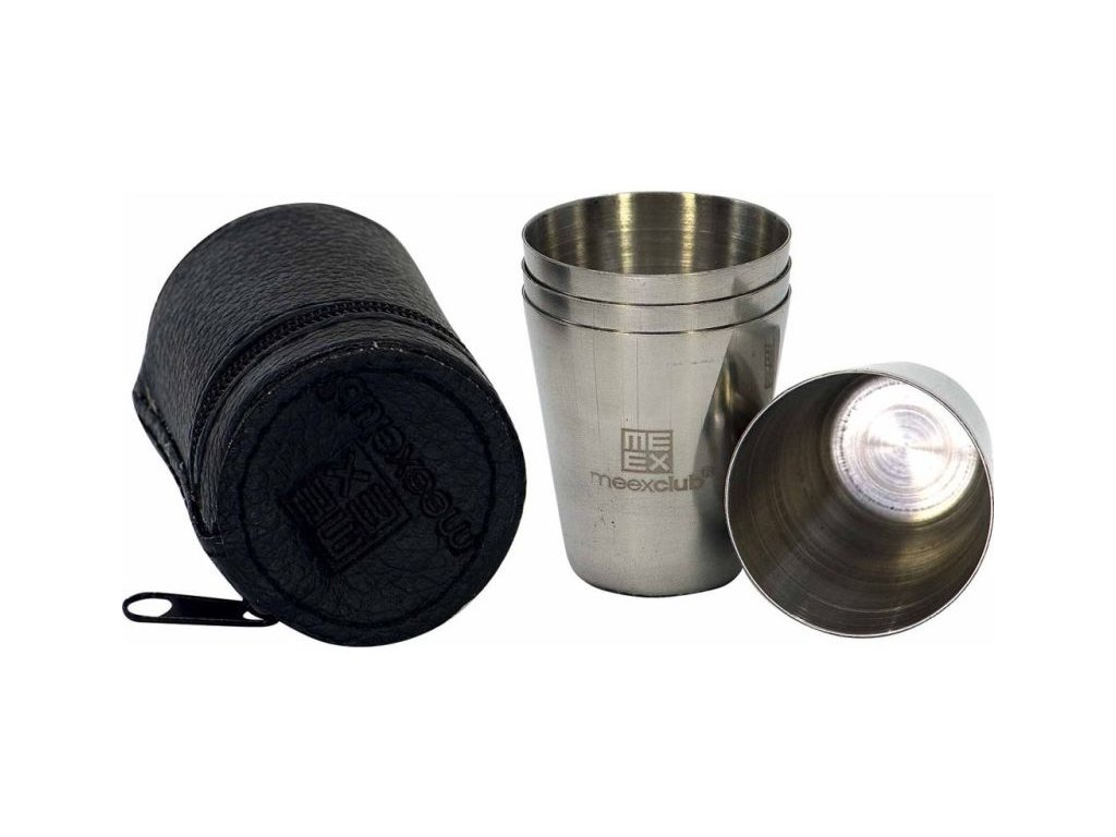 Cestovní souprava čtyř pohárků z nerezové oceli. Tyto pohárky jsou určeny na menší přípitky na cestách a v přírodě. Pohárky jsou vyrobeny z nerezové oceli, takže se nemusíte obávat, že se během cestování poškodí nebo rozbijí.