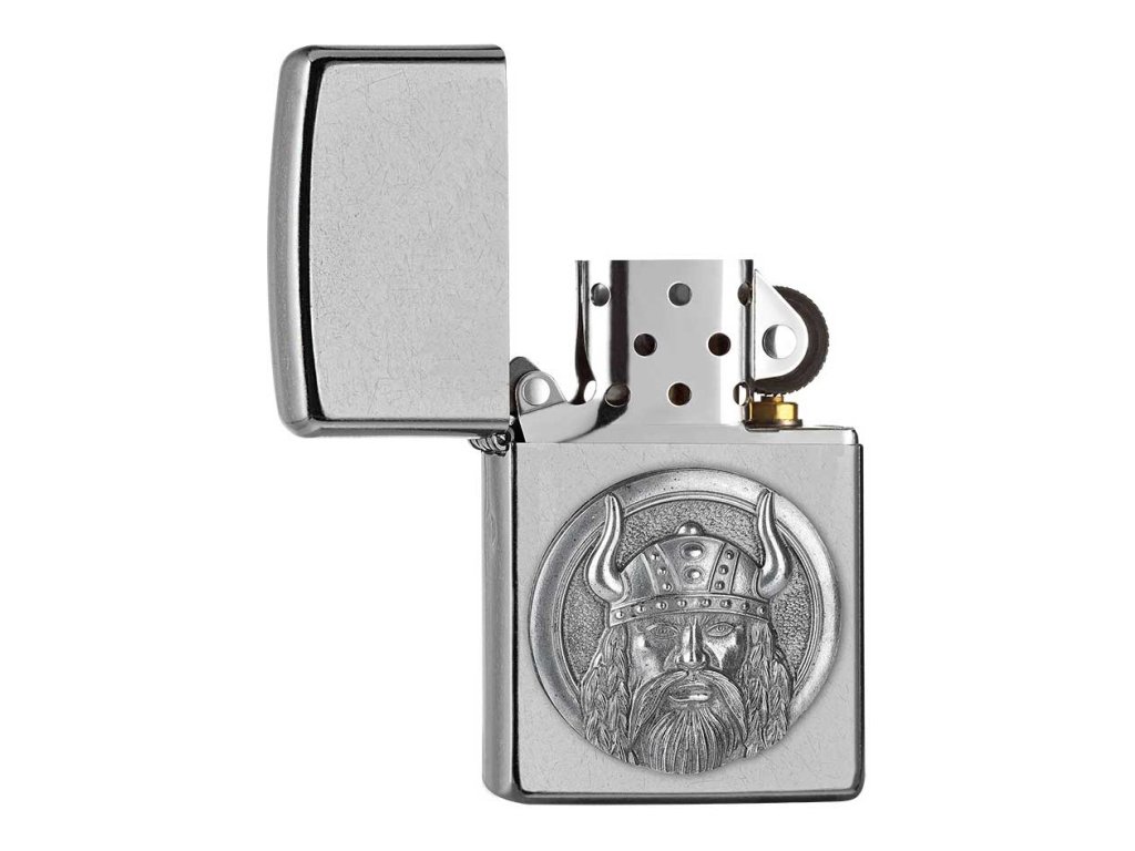 ZIPPO Viking Emblem je originální benzínový větruodolný zapalovač, který zaujme robustním designem s plastickým emblémem vikingské hlavy. Tento model ze série Legendy symbolizuje sílu, odvahu a odolnost – přesně jako samotní Vikingové. Povrchová úprava Street Chrome™ dodává zapalovači autentický vzhled jemně opotřebovaného kovu, který je zároveň odolný vůči poškrábání a otiskům prstů.
