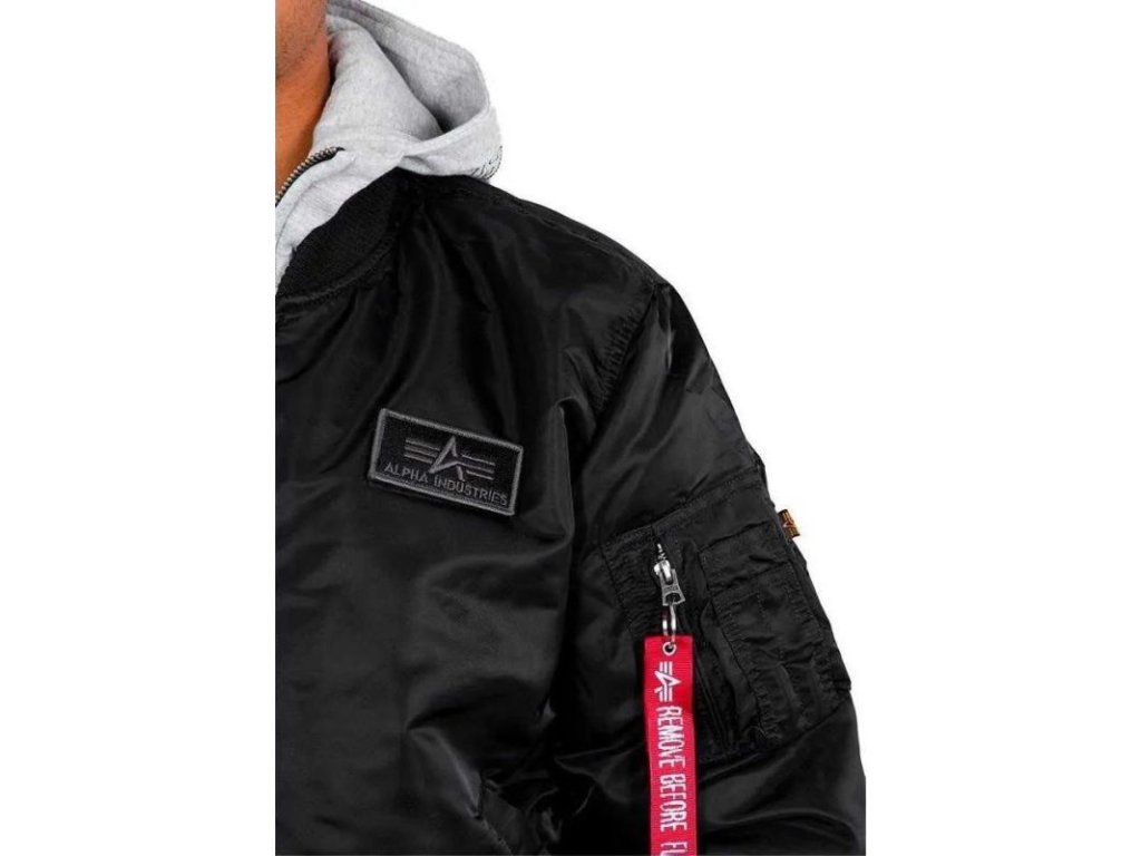 It is made from 100% nylon with a polyester filling, ensuring resistance to adverse weather. The hood is a combination of 80% cotton and 20% polyester, making it soft and comfortable. On the jacket, you will find the iconic Remove Before Flight tag and a Velcro patch with the Alpha Industries brand on the chest.