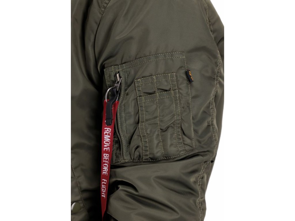 Jacket Ma-1 VF Authentic Overdyed was carefully sewn, and the manufacturer paid attention to even the smallest details, which is visible in every single detail. This model features an RBF tape hanging on the pocket on the left sleeve. The inscription Remove Before Flight traditionally refers to the aviation jackets that Alpha has been making for the US Air Force for many years.