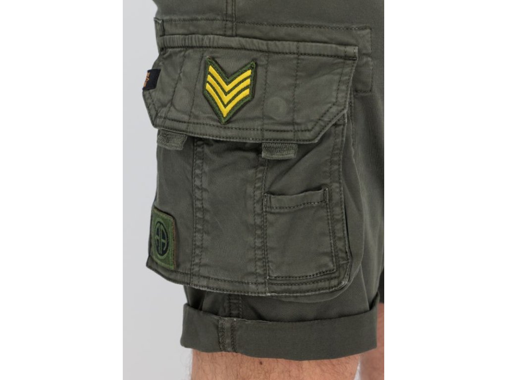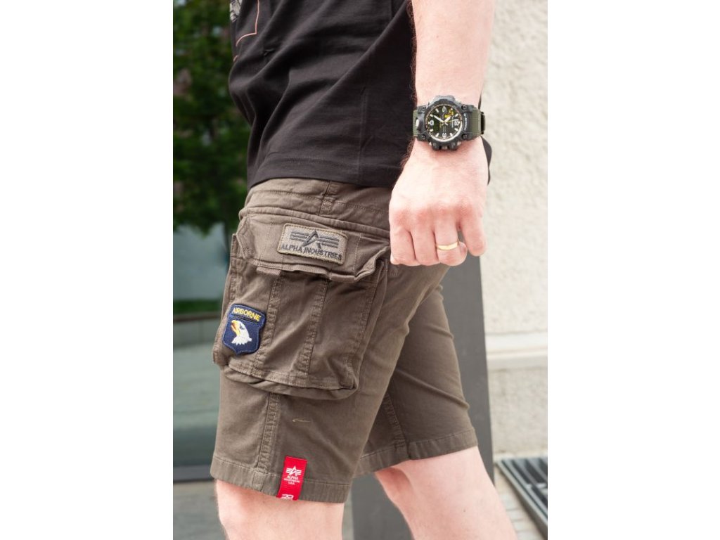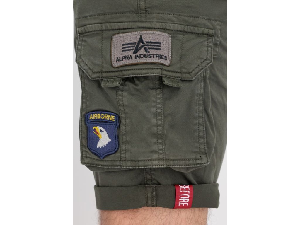 Military patches: Add a unique and authentic look to the shorts, referencing the military heritage of the Alpha Industries brand.