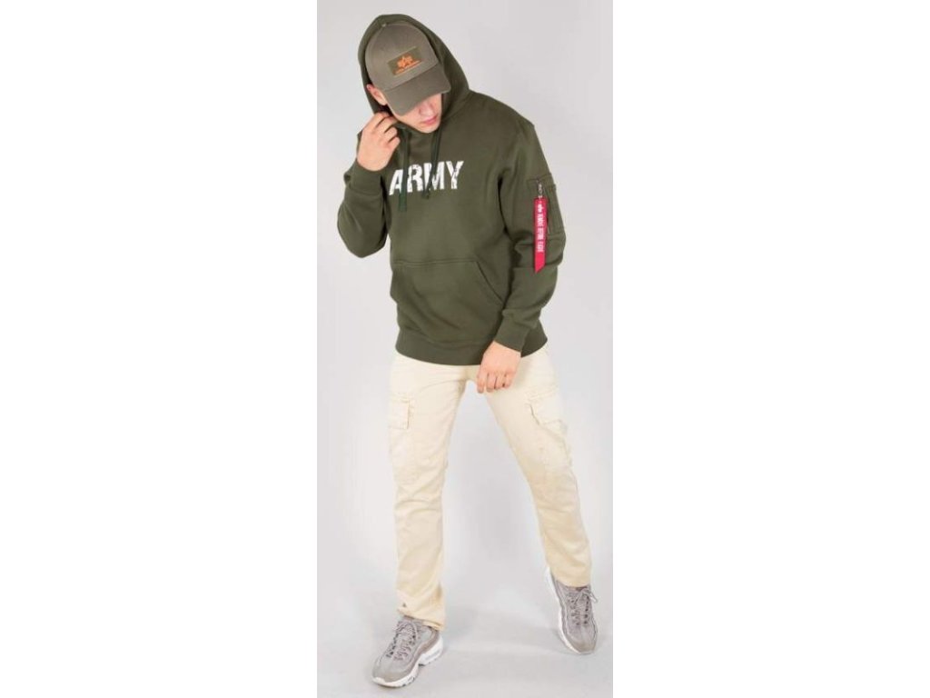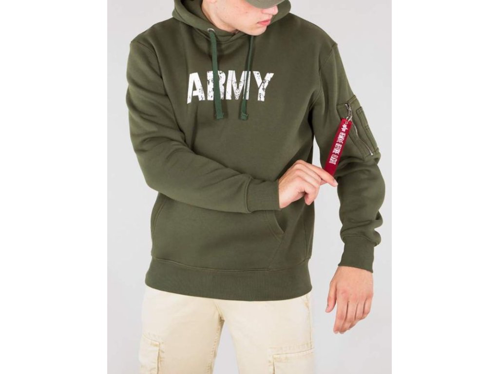 High-quality and stylish hoodie from Alpha Industries with the inscription ARMY, made from cotton and polyester.