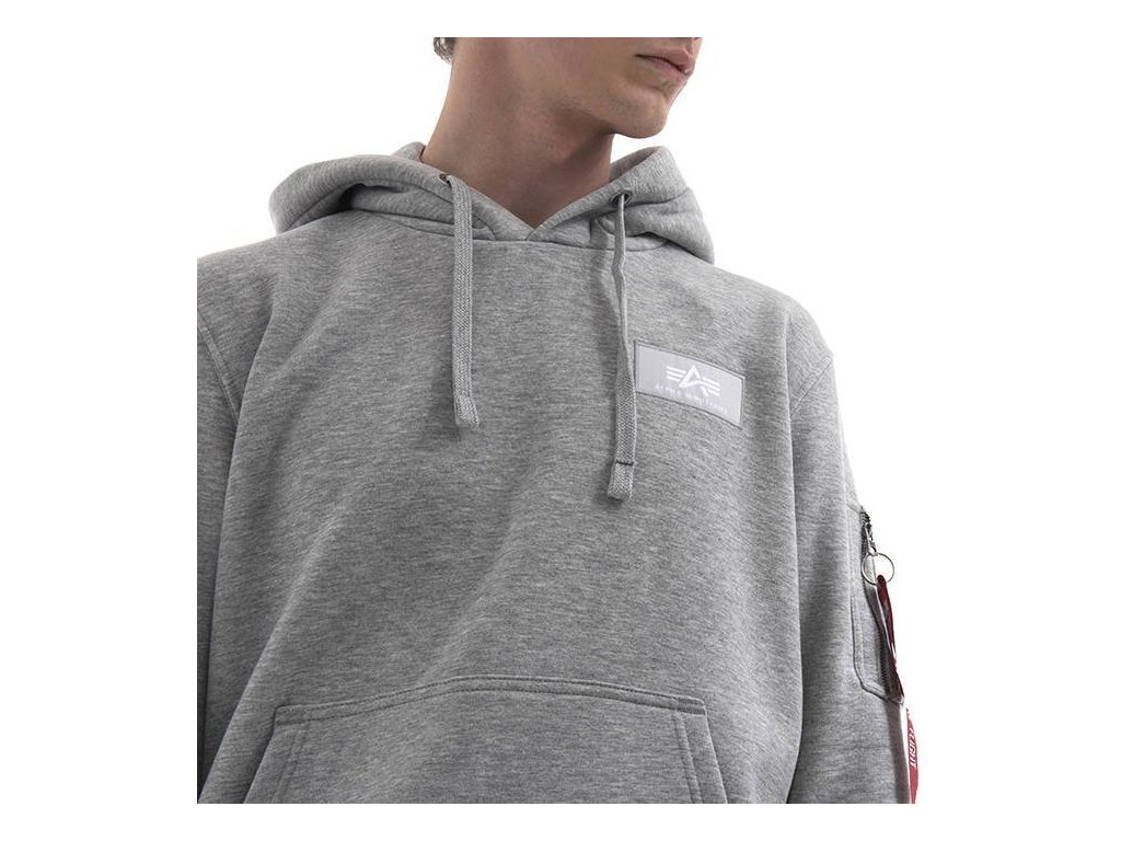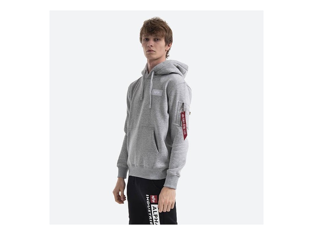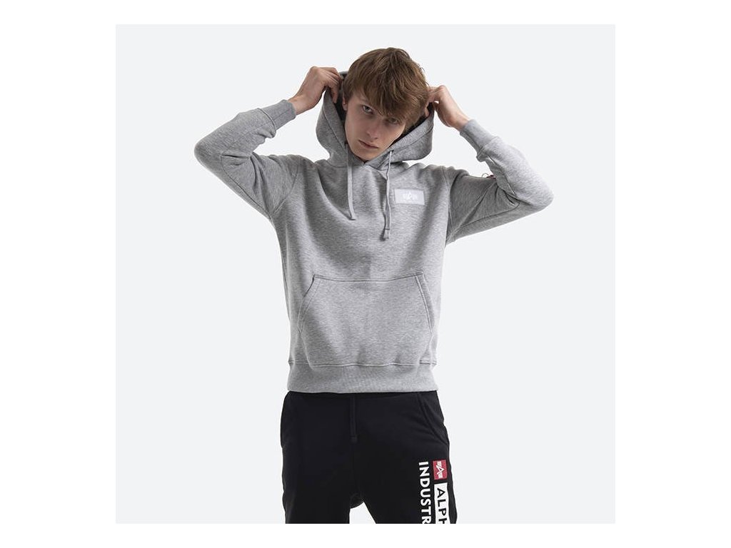 ALPHA INDUSTRIES Back Print Hoody Sweatshirt (178318) is a stylish men's sweatshirt with a striking print on the back that adds a modern and sporty look. The sweatshirt is made from 80% cotton and 20% polyester, ensuring comfort, breathability, and durability. It has a classic regular fit cut, meaning it is comfortable for most body types. On the front, there is a small brand logo, while the iconic Remove Before Flight patch is present on the sleeve. The hood with a drawstring provides extra protection against the wind.