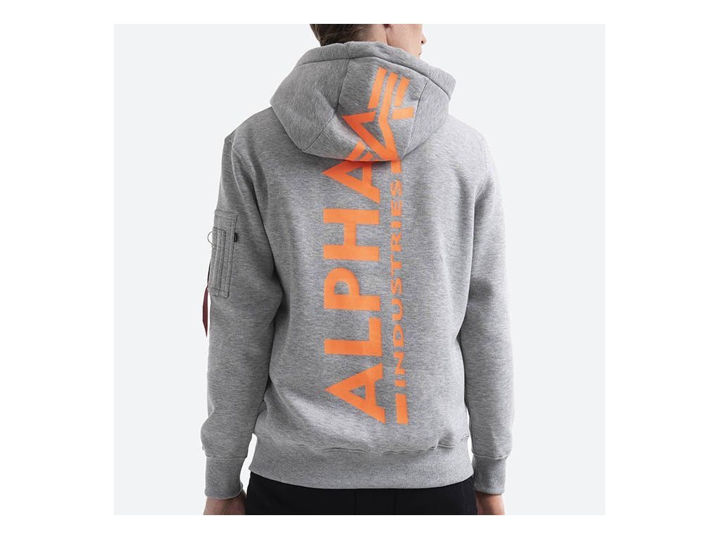ALPHA INDUSTRIES Hoodie Back Print Hoody Neon Print - grey heather/neon orange (178318NP/599)