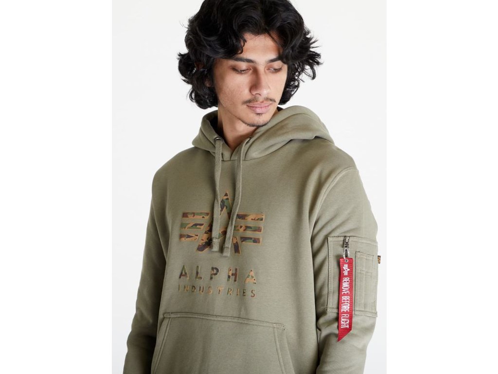 Stylish hoodie Alpha Industries Camo TPU in olive color is a great choice for every day for men who prefer a sporty look. It is comfortable, pleasant to wear, and thanks to quality materials, it ensures comfort and style for a long time.