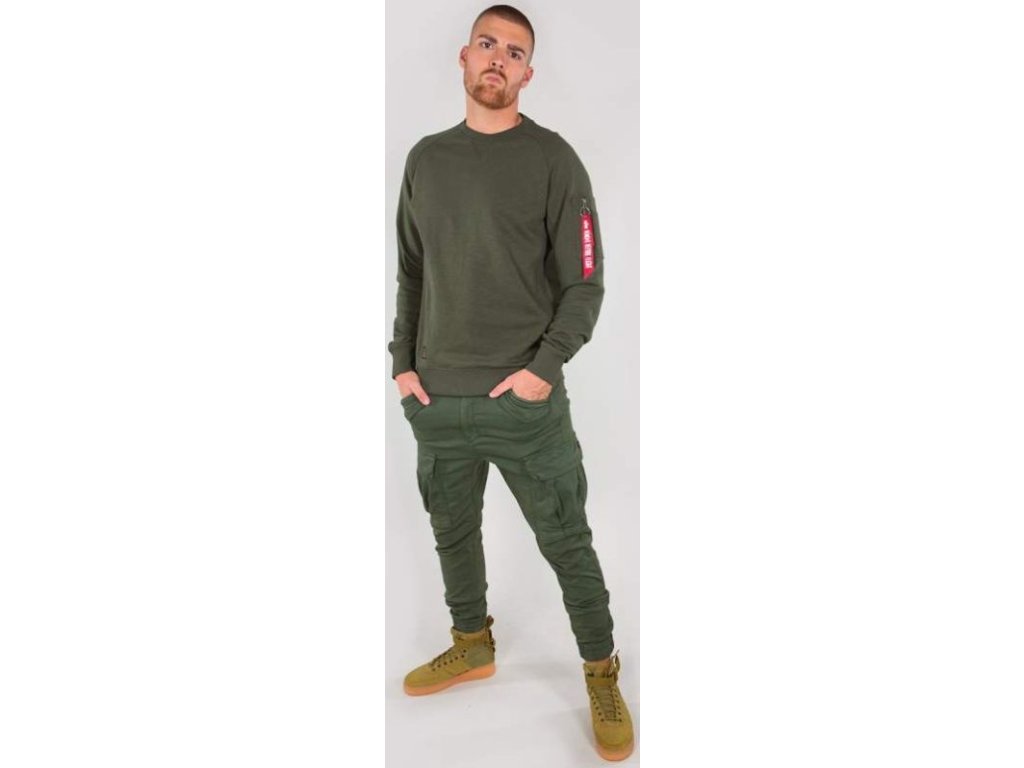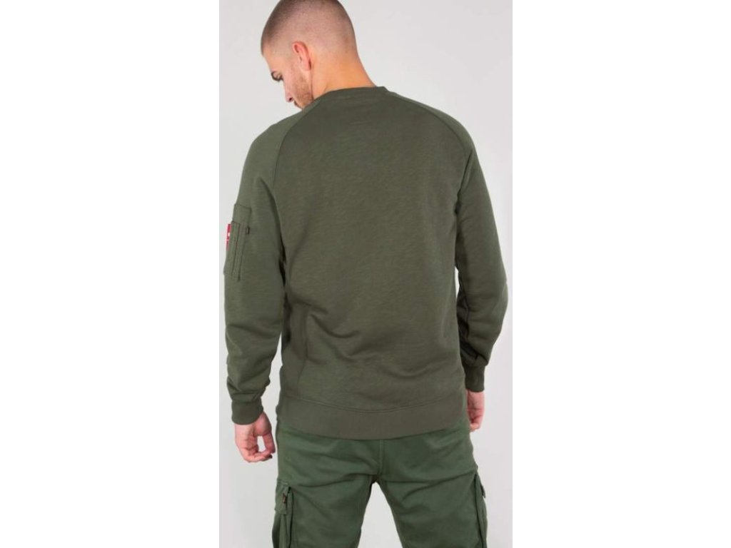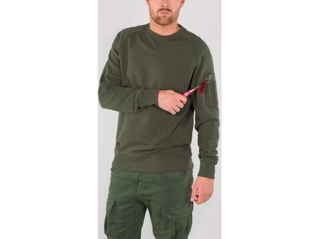 High-quality, stylish, and above all comfortable Alpha Industries sweatshirt without a hood with a handy pocket on the left sleeve and a Remove Before Flight tag.