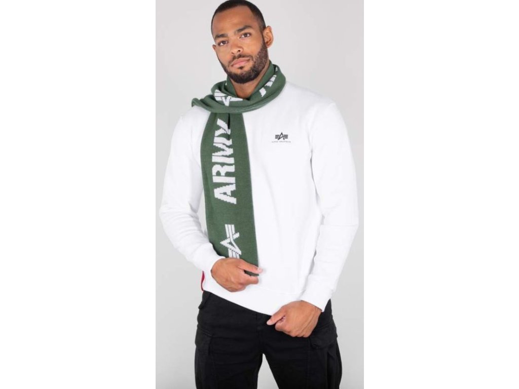 Green stylish scarf with the inscription ARMY and Alpha Industries logo.