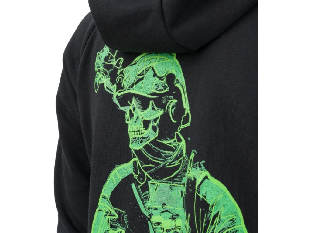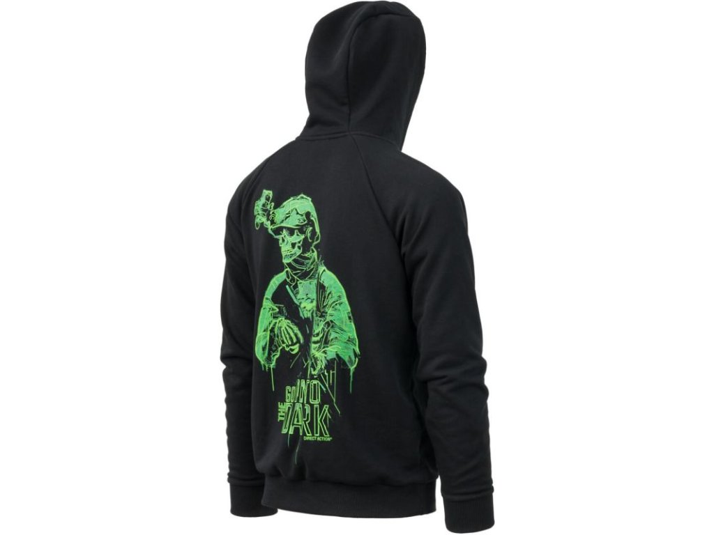 Civilian look with modern graphics on the back and a subtle logo on the chest. The graphic on the back depicts a skeleton in full military gear with the motto Into the Dark, highlighting the tactical character of other DA brand products.