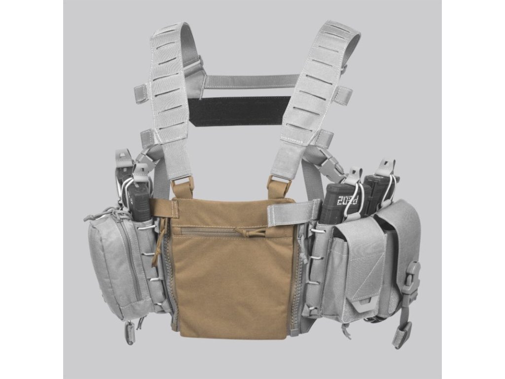Sniper Panel od značky Direct Action je prídavný predný panel navrhnutý pre chest rigy HURRICANE a TEMPEST. Tento panel je pripevniteľný priamo na predný zips, čím sa posúvajú bočné strany chest rigu a zanecháva sa len plochý predný povrch. Tento dizajn je ideálny pre pohodlné ležanie na bruchu, čo je dôležité pre sniperov.