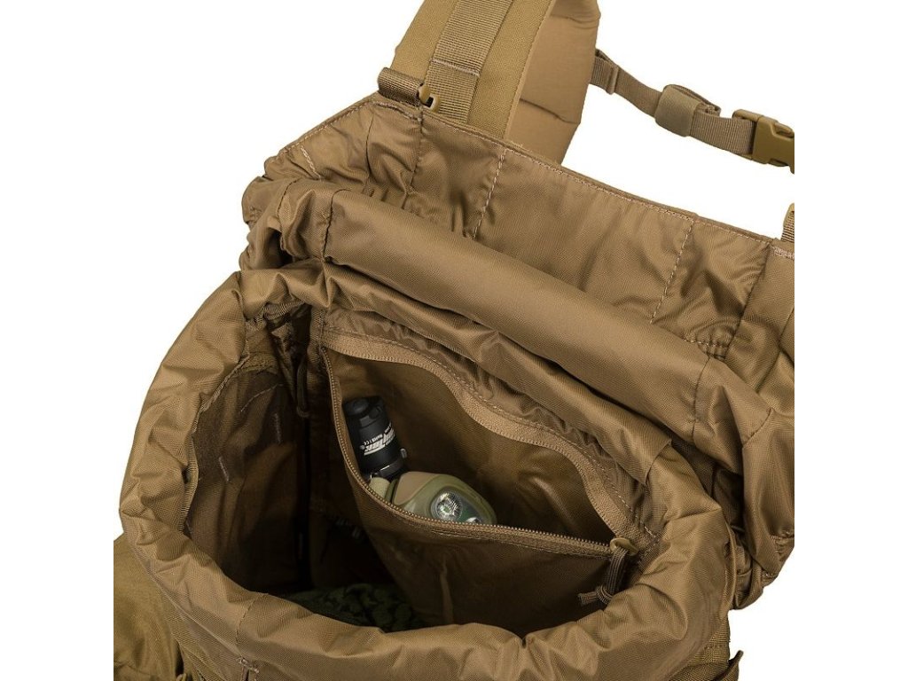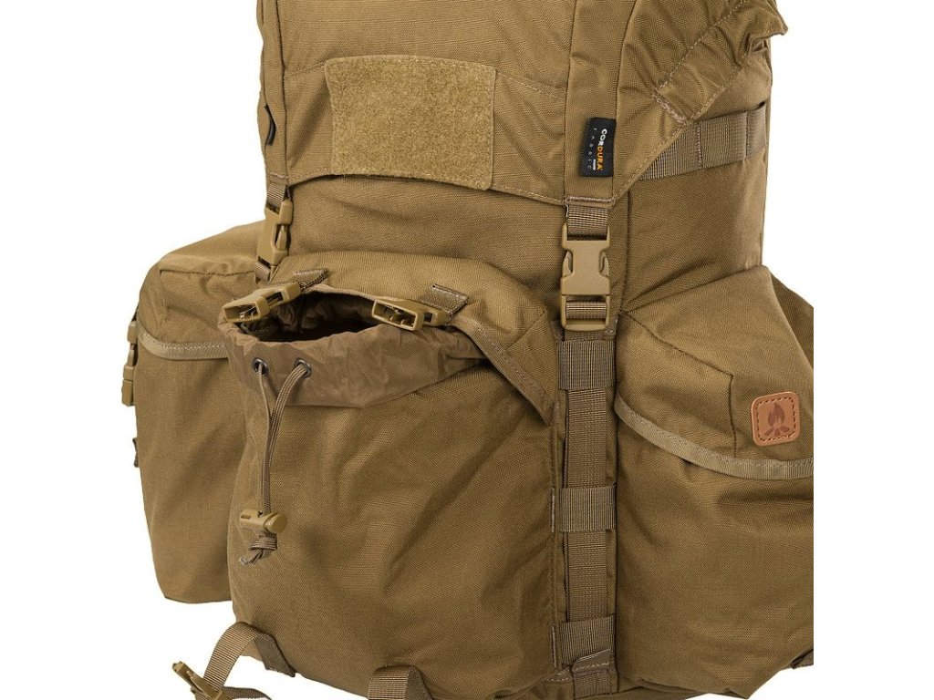 The backpack is designed to pack the most essential gear for a short trip. The main compartment with a volume of 18 l can hold clothing and camping gear, and the side pockets can fit food or water containers. The middle pocket has a drawstring to protect small items from falling out. Bergen has three places for carrying an axe and two pockets for a saw or knife. Additional pouches or gloves can be attached to the MOLLE / PALS hidden on the front. Additional equipment can be attached to the bottom or the flap of the backpack. Made exclusively from Cordura 500D.