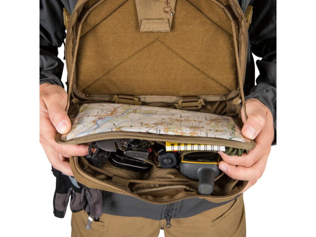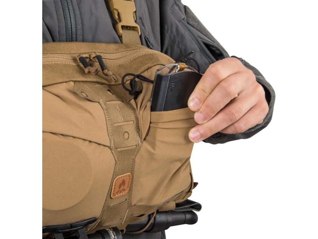 Chest backpack from Helikon brand with an internal removable organizer and MOLLE / PALS webbing. The backpack can be opened at a 90-degree angle. The minimalist comfortable harness does not interfere with the shoulder straps of classic backpacks. Thanks to this backpack, you can easily carry all the necessary items you need to have at hand on your chest.