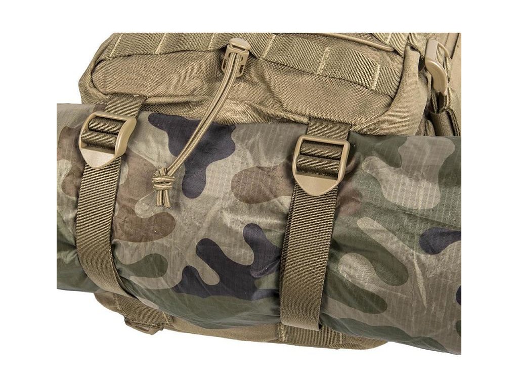 Inside the main compartment, there is a mesh pocket. On the outside of the backpack, there are adjustable mesh straps and a MOLLE / PALS system. The front part of the backpack features a VELCRO panel. On the sides of the backpack, there are adjustable straps, allowing for the reduction of the backpack's dimensions or the attachment of additional gear. The backpack is equipped with high-quality YKK zippers. On the back, there is a mesh ventilation system.