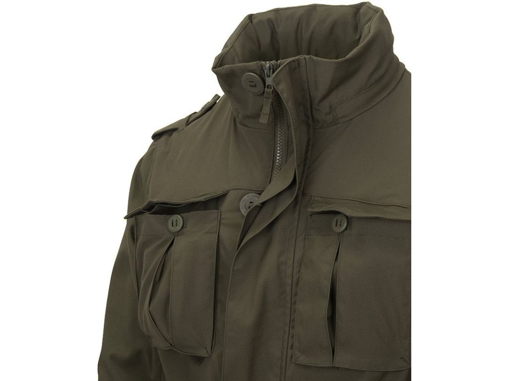 Inside, symmetrically on the left and right sides, there are pockets for magazines. This classic military jacket has also been reinforced in areas exposed to damage and equipped with a hood hidden in the collar. The front is fastened with strong Canadian buttons and a "breakaway" zipper, which allows for immediate unfastening of the jacket.