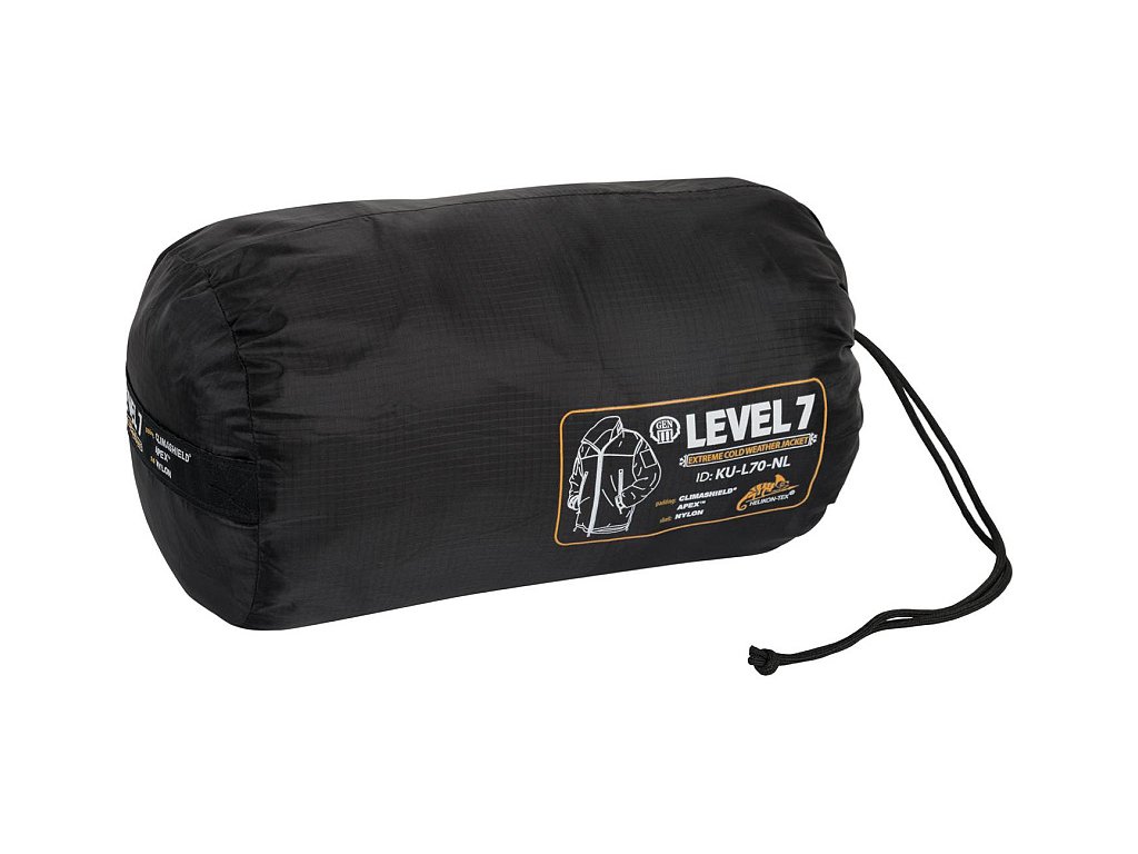 The Helikon Level 7 winter jacket with Climashield ® Apex ™ technology keeps you warm even in really cold weather. The Helikon ® Level 7 jacket is a fully insulated outer layer of clothing. The water-repellent properties of the special Climashield ® Apex ™ material keep the user dry even in wet or extremely cold conditions.