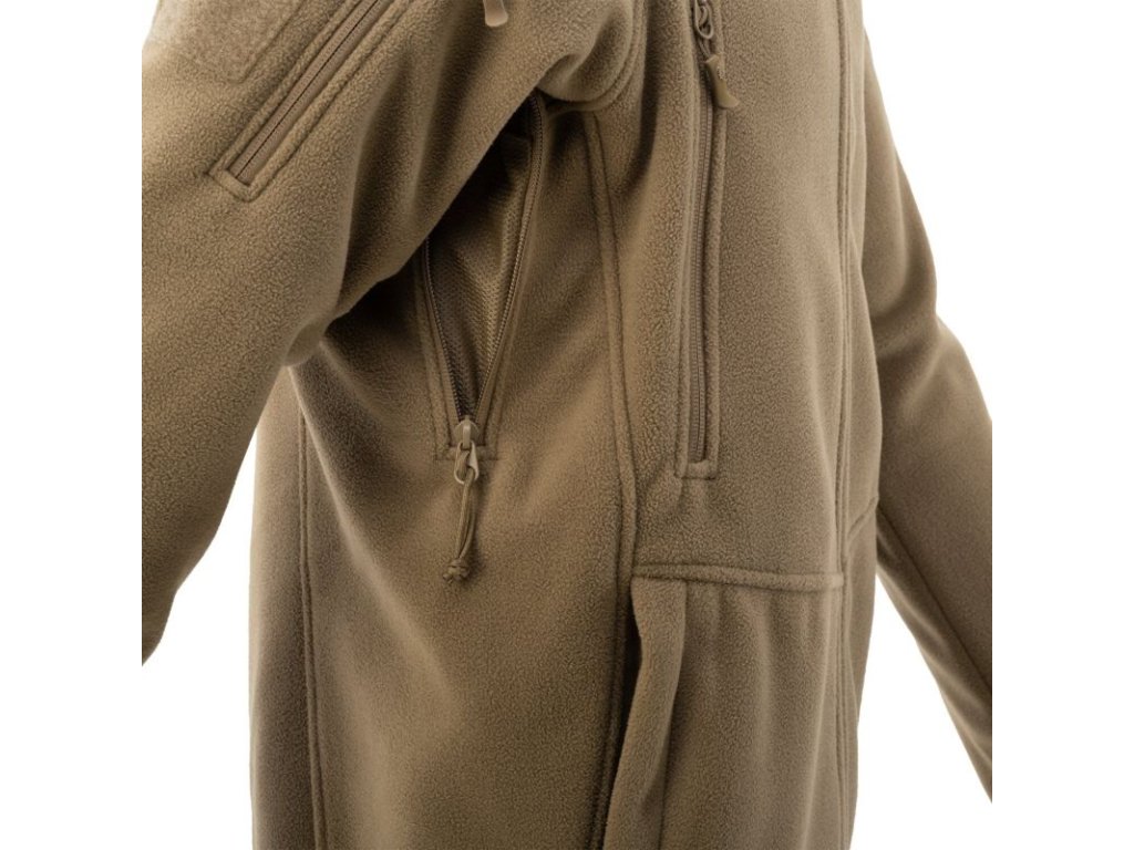 The Hybrid Fleece material has two different layers. On the outside, it resembles classic fleece, but inside it is a grid fleece, known from Alpha Hoodie and Alpha Tactical Jackets. It is a material with a characteristic fine checkered structure of thicker raised square parts and thinner gaps between them. Thanks to this, the Patriot Mk2 jacket is lighter and more breathable while still keeping you warm. Zippered ventilation openings in the armpits help with thermoregulation.