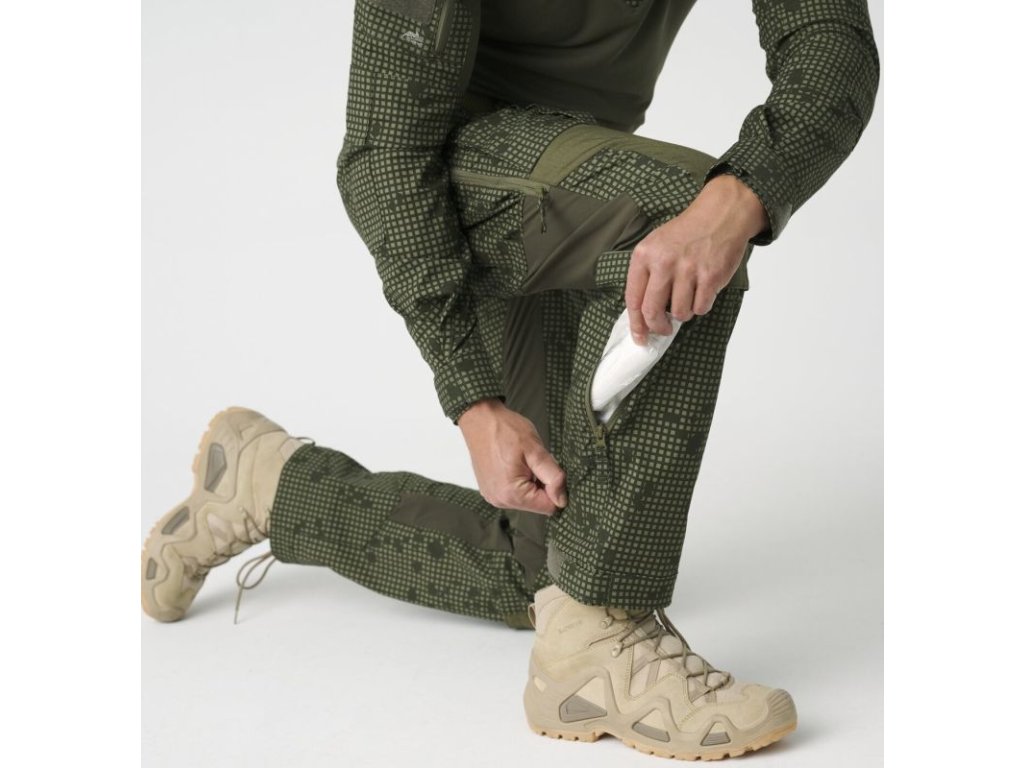 In vital areas (waist, crotch, and back of the knees), we used inserts made of Versastrech material. It dries quickly and has high breathability. The knee area is reinforced with Cordura 500D fabric with openings for protective inserts. Thanks to additional drawstrings placed under the knee and at the bottom of the pants, the pants can be easily adjusted to the leg.