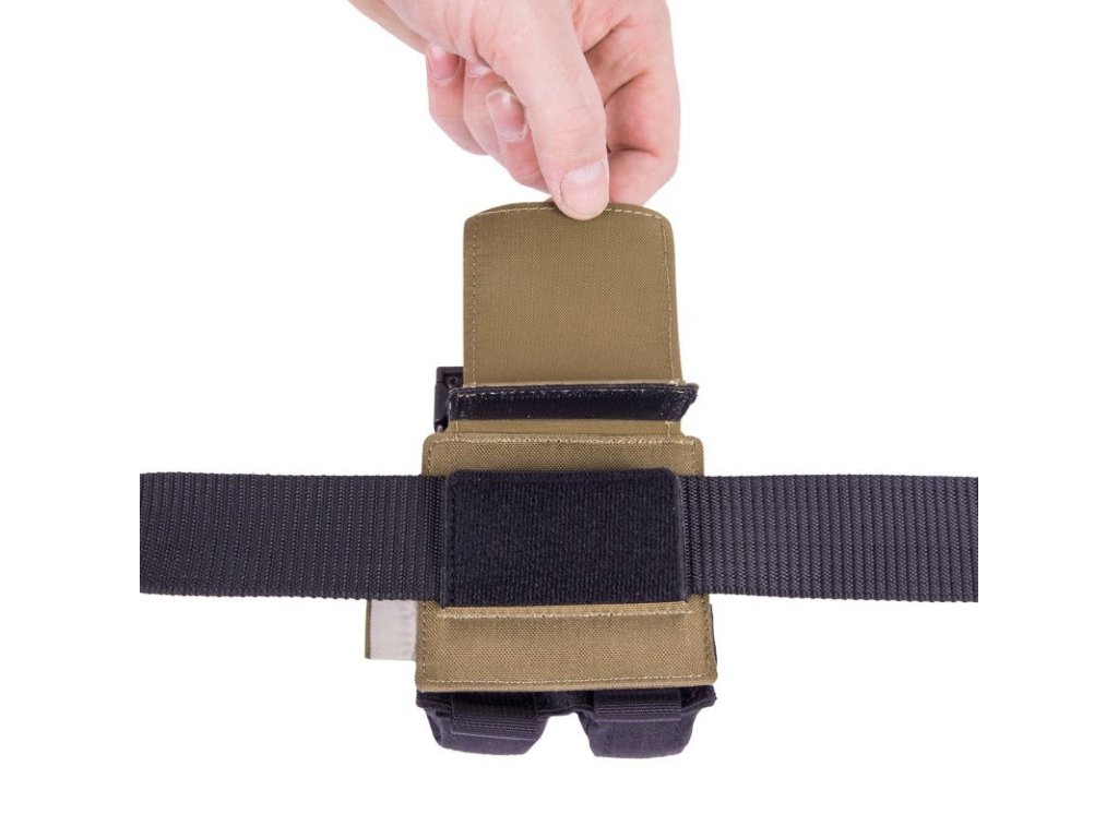 Molle adapter for belt by Helikon has 2 PALS rows in two columns and is quickly detachable from the belt. It allows attachment of MOLLE / PALS pouches to a belt (up to 45 mm wide).