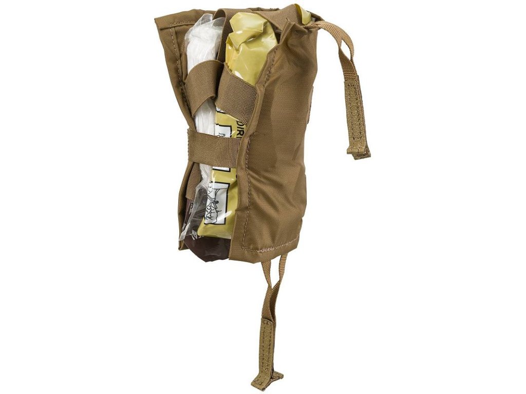 The inner elastic loop keeps your equipment in place. The outer elastic cord can shrink the pouch or can be used to carry a tourniquet. The Med Kit set can be carried vertically or horizontally. Velcro panel allows personalization. The pouch can be attached using the MOLLE / PALS system or can be attached directly to a belt up to 50 mm wide.