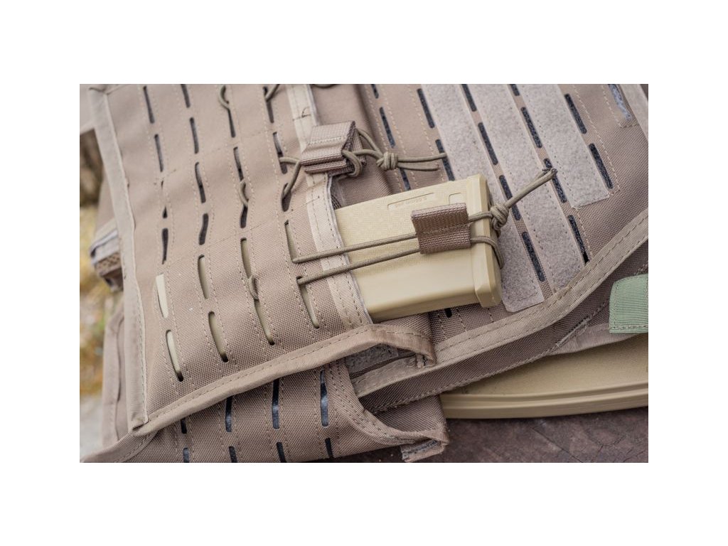 In the upper front part, there are velcro panels for patches and in the back part, a rescue handle for quick and easy evacuation from a dangerous zone. In the front part, we find 3 flat pouches for M4-style magazines – if needed, these pockets can be completely closed to provide the user with a completely flat space. Around the shoulders, there are eight elastic straps for attaching Comtac cables or hydration tubes. The inside of the vest and shoulders are reinforced with soft spacer mesh, ensuring comfort and air circulation.