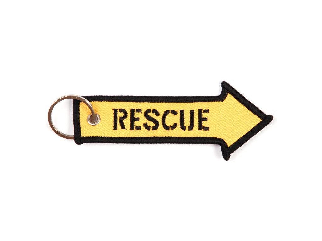 Keychain in the shape of an arrow with the inscription RESCUE.