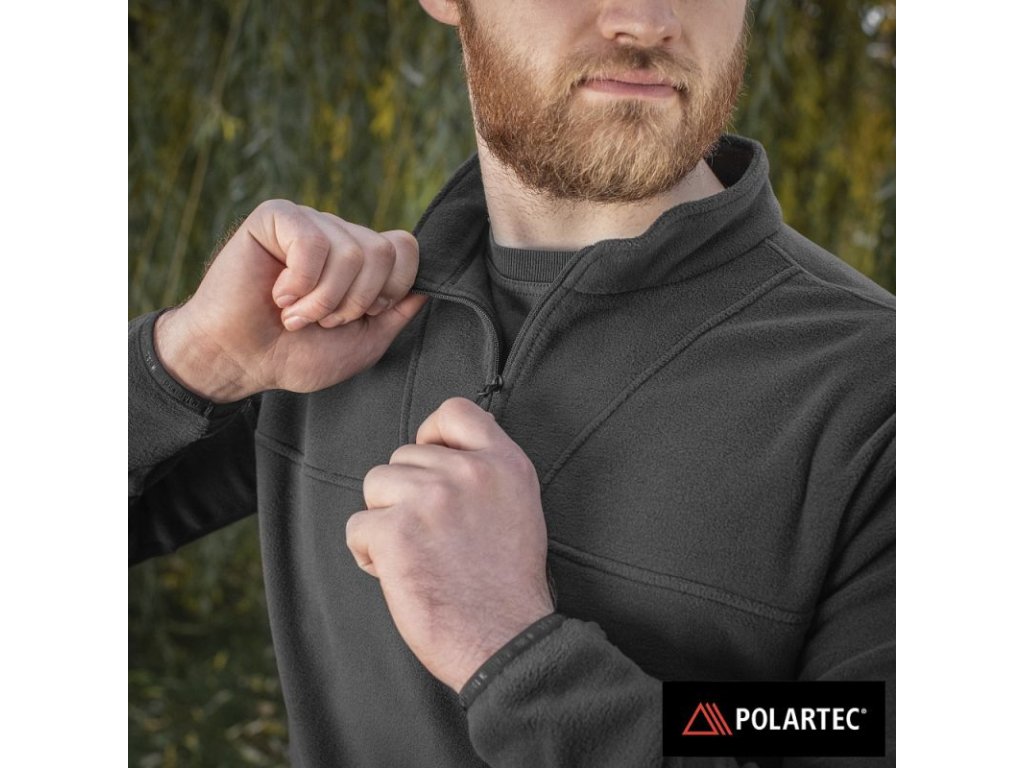 Stylish fleece sweatshirt Delta Polar Pro from M-Tac is made from abrasion-resistant fleece Micro Series (100% polyester) from the world-renowned company Polartec®. This material is pleasant on the body and provides good heat protection. The sweatshirt has a zipper in the middle of the chest, which significantly facilitates wearing.