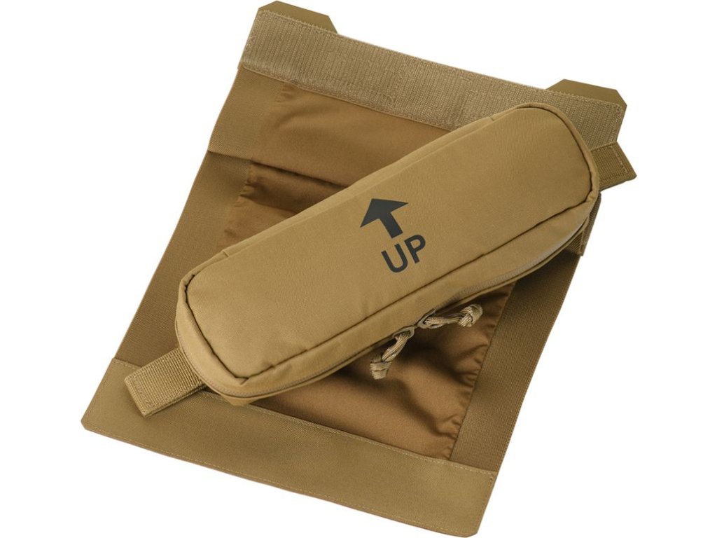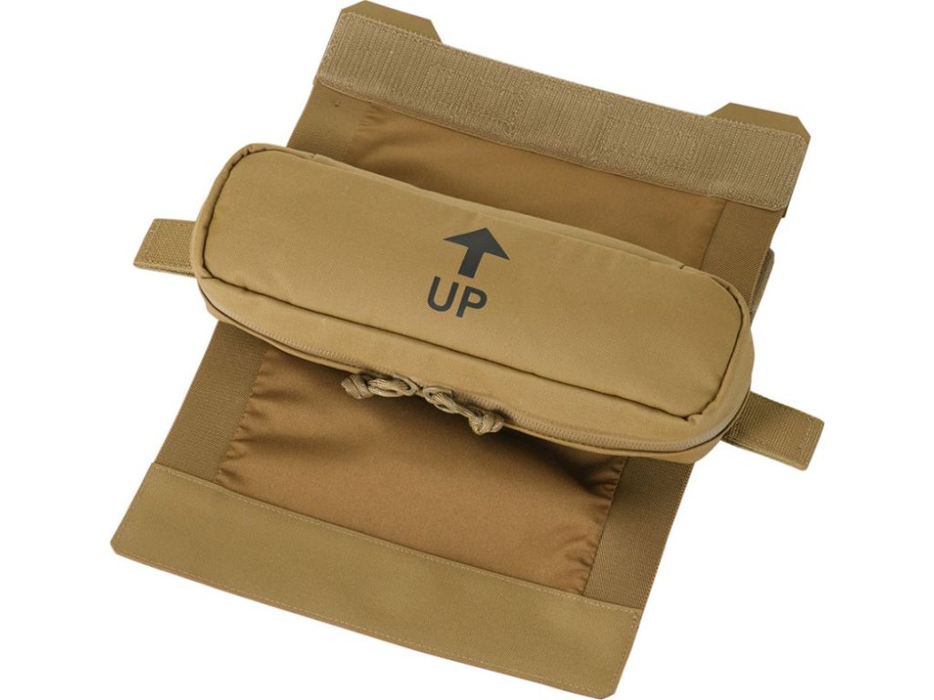 The pouch consists of two parts: an outer pocket, which is an additional device, and an IFAK (individual first aid kit). The outer pocket has an adjustable volume and provides open bilateral access to the first aid kit. By pulling the strap on the first aid kit, you can quickly remove it. The first aid kit is attached to the cover with a hook-and-loop fastener to prevent its accidental loss. Thermo-transfer (UP) applied to the front of the first aid kit indicates its position in the cover.