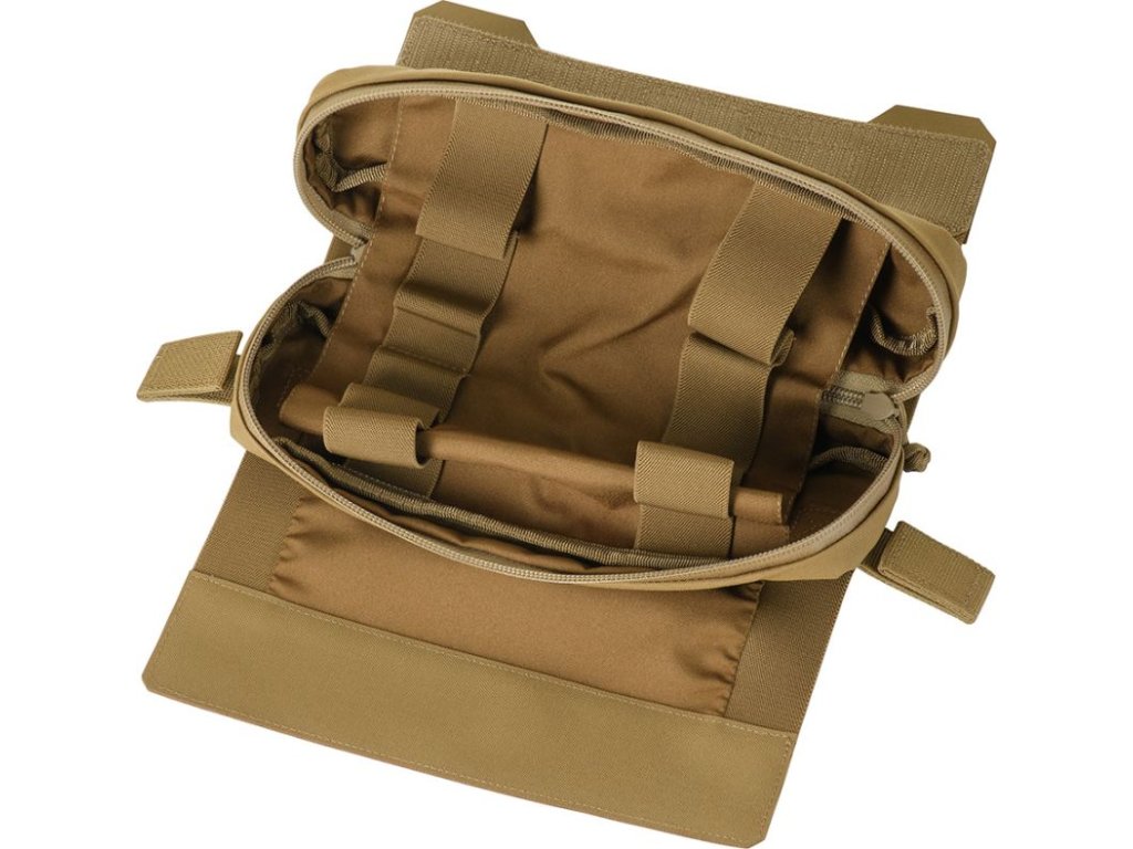 The medical pouch fits into the back pocket of a tactical vest. An additional removable hook-and-loop fastener will facilitate its integration into any plate carrier where the bottom of the back pocket closes with a hook-and-loop fastener.