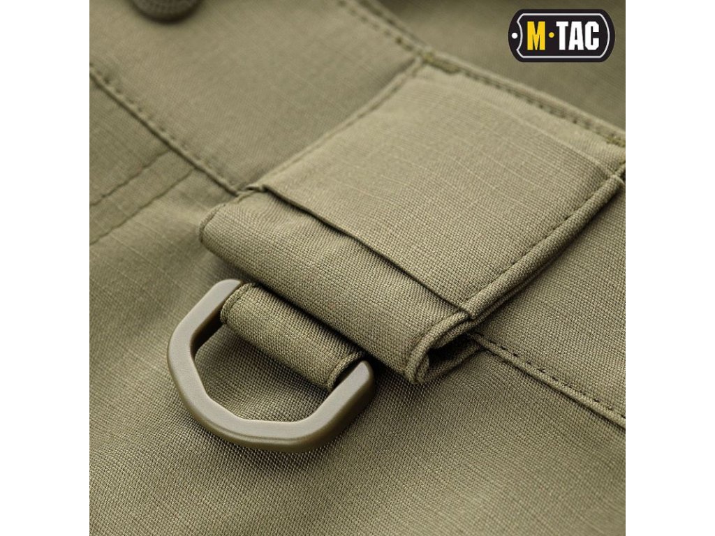The comfort of movement is ensured not only by the elastic semi-cotton flex rip-stop material but also by the tunnel construction of the strap, which fits perfectly at the waist and does not interfere when bending. The waist is fastened with a zipper, hook, and button, and the size can be adjusted with internal elastic inserts. Directly under the front loops, YKK D-rings are sewn in for attaching items using a carabiner or loop. The shorts are designed to be worn with a belt up to 5.5 cm wide. Six practical pockets allow you to optimally organize the items you carry with you every day. The wide side pockets of the pants are reinforced with inserts at the bottom: there is space for attaching a clip for a folding knife, tactical pen, or mini flashlight. The side cargo pockets are equipped with an asymmetrical flap with Velcro, making it easy to slip your hand into the pocket but preventing the contents from spilling out even during active movement. The expansion of the cargo pockets is a decorative and functional element. It allows you to increase the internal volume of the pockets for carrying large items if necessary.