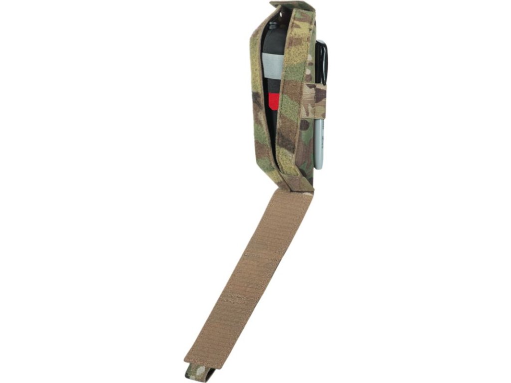 On the front cover of the pouch, there is a loop (made of webbing) that provides easy and quick access to the tourniquet.