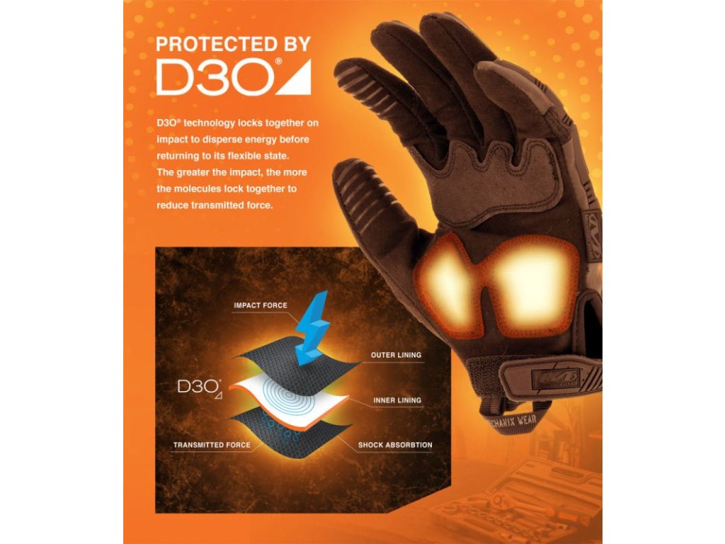 MECHANIX M-Pact 2 gloves feature a unique dual-layer stretch Spandex that increases their flexibility and fits well to the palm. They have an extended construction with sufficient wrist protection and a hook and loop closure. Rubber TPR panels placed on the fingers provide protection against impacts and abrasion. The thumb of the gloves is additionally protected by a special layer that serves as additional protection against glove damage and also protects the thumb from injuries.