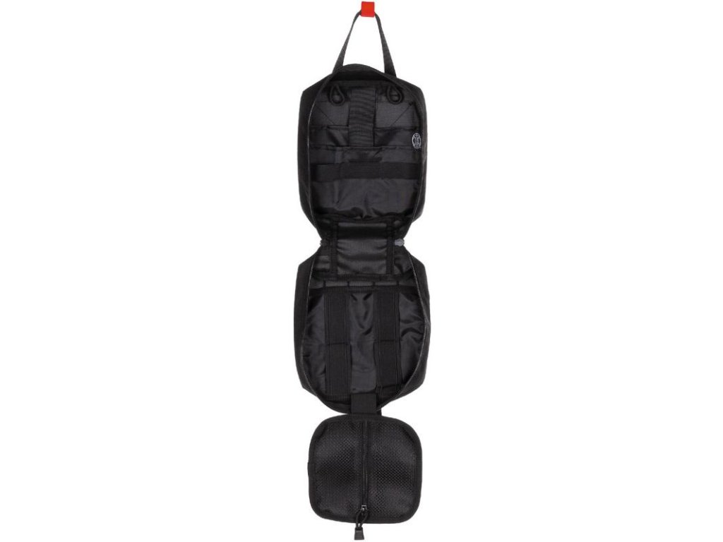 Large pouch for first aid kit in black color with velcro panel. Pouch is MOLLE/PALS compatible and made from polyester.