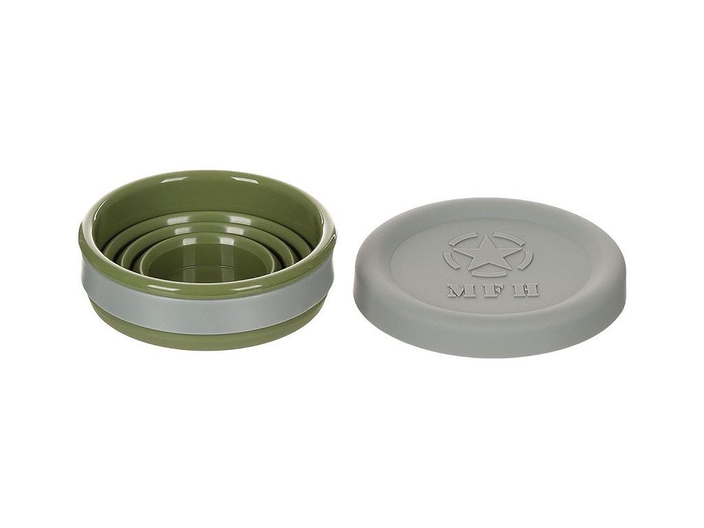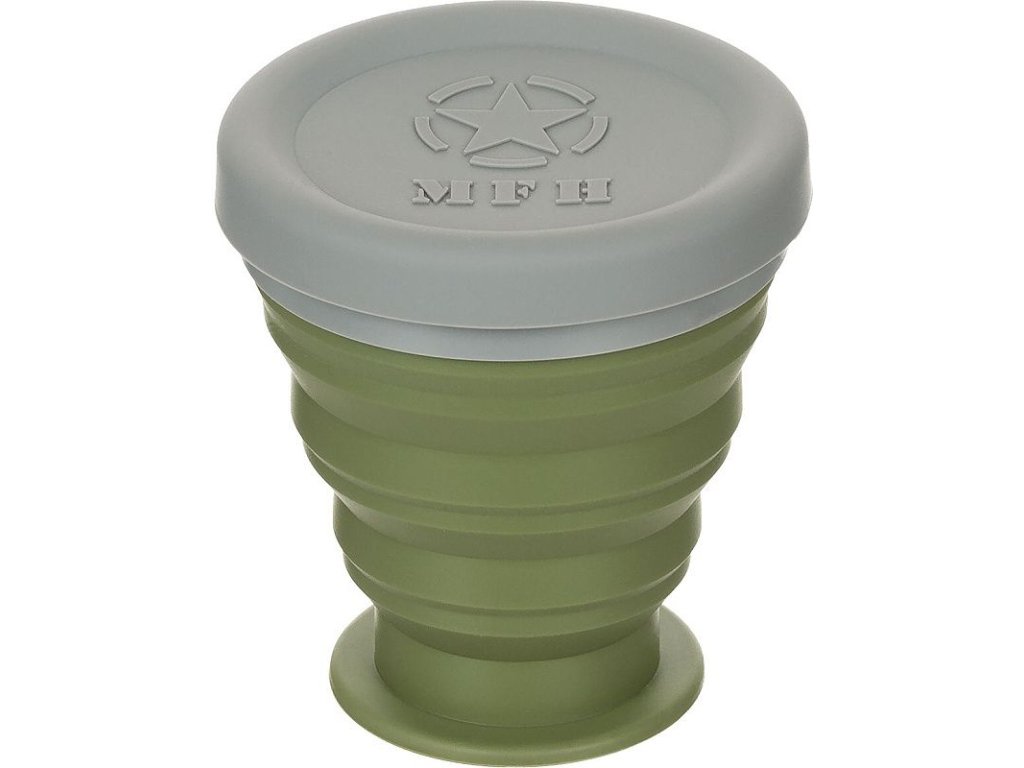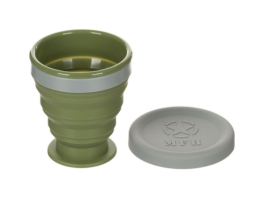 Small practical folding cup by MFH with a capacity of 200ml in green color. It is an ideal cup for travel and hiking, made of silicone and can handle the dishwasher, freezer, and microwave.