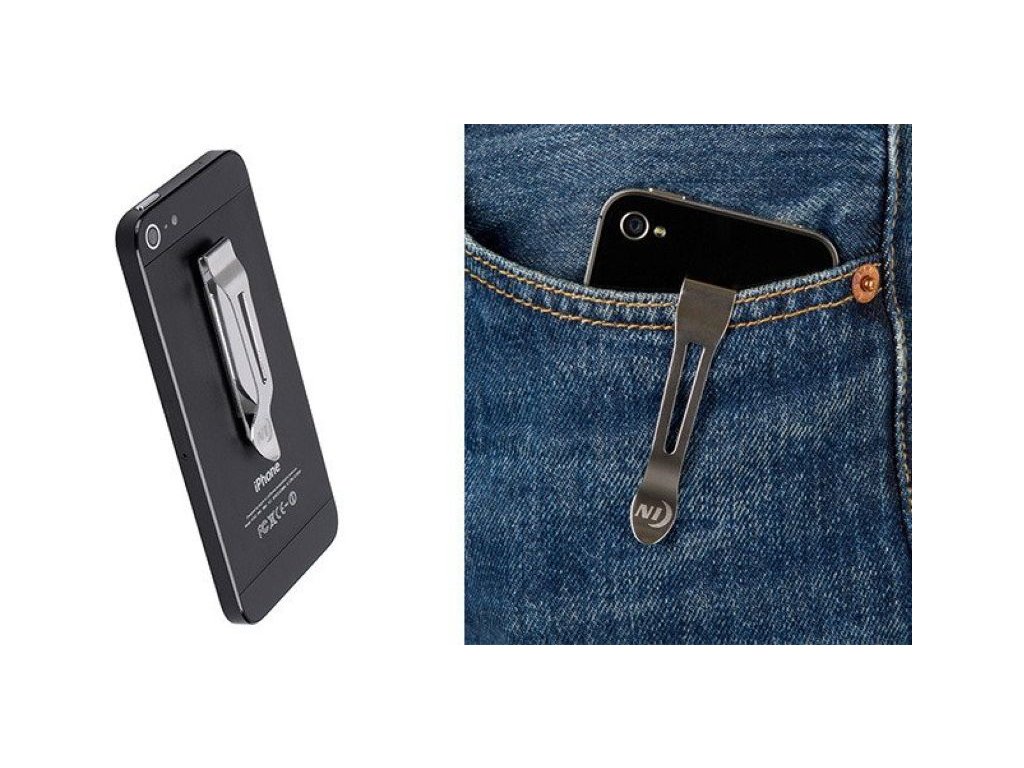 HipClip is made of lightweight and durable stainless steel. It is used to attach any device that is not equipped with a clip to the edge of a pocket, backpack, etc. It is manufactured by the American company Nite Ize.