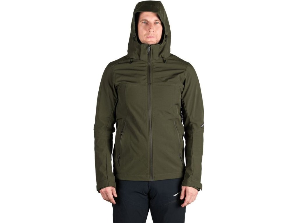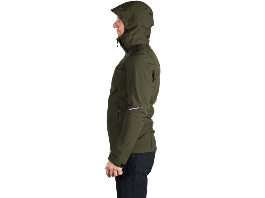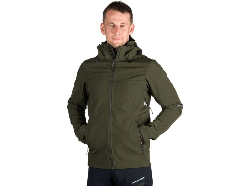 Men's softshell jacket NORTHFINDER ANTONI in dark green color is an ideal choice for outdoor activities during transitional periods – from autumn to spring. Thanks to the three-layer softshell with parameters 5,000 mm / 5,000 g/m²/24 h, it provides reliable protection against wind, cold, and moisture.
