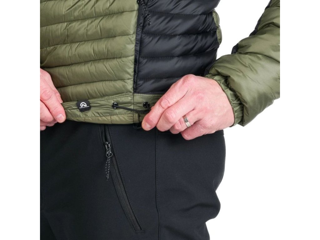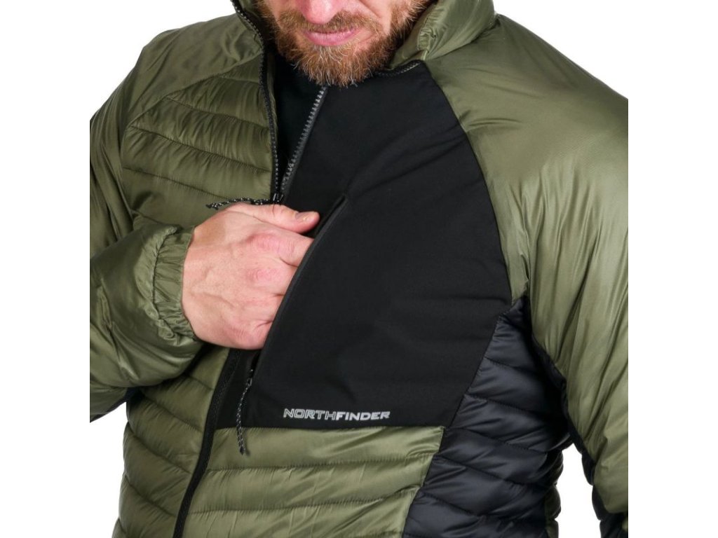 Men's lightweight universal insulating jacket NORTHFINDER FABRIZIO is suitable for cold weather during autumn, winter, and spring. Thanks to its water-repellent DWR finish without PFC, it withstands even slightly humid environments, but it works best in dry cold or as a mid-layer under a waterproof jacket. The jacket is insulated with synthetic fleece, which mimics the properties of down, but unlike down, it is more resistant to moisture and retains warmth even when wet. The outer material is lightweight, downproof, pleasant to the touch, and complemented by practical details such as elastic sleeves, adjustable waist, and reflective print.