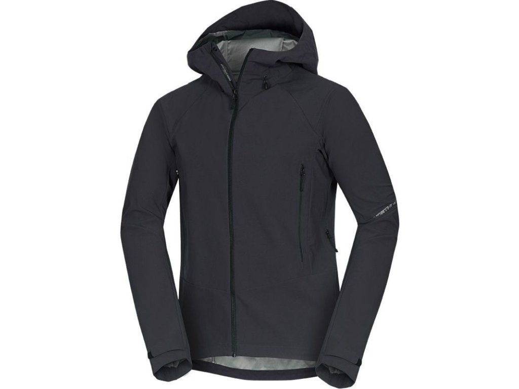 Men's windproof and water-repellent jacket NORTHFINDER FARO is a reliable companion for hiking, traveling, and active movement in nature from spring to autumn. It is made from three-layer softshell with a membrane, which withstands adverse weather thanks to the water column of 20,000 mm H₂O and at the same time allows the skin to breathe even during higher activity. The jacket has taped all seams, ecological DWR treatment without PFC, practical ventilation in the armpits, and reflective elements for better visibility. Comfort is enhanced by the ergonomic 4D hood, adjustable cuffs and waist, as well as high-placed pockets accessible even with a backpack on.