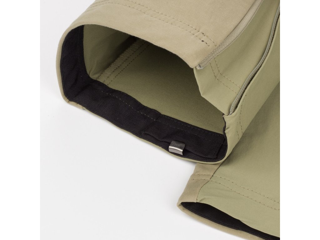 » The lower part of the trousers features a zipper, an inner abrasion-resistant tape for increased durability, and a fixing hook for a lace.