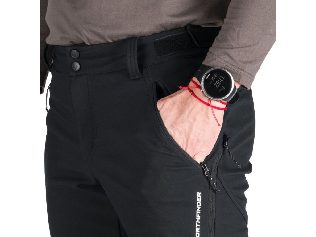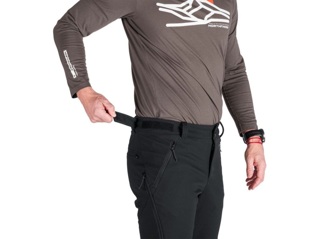 Technical softshell pants NORTHFINDER ANATOL are designed for demanding conditions and active hikers who seek maximum comfort, protection, and durability. They are made from three-layer softshell with a 10,000 mm H₂O / 10,000 g/m²/24 h membrane and an eco-friendly water-repellent DWR finish without PFC substances. Thanks to this, they provide excellent protection against wind, rain, and snow while maintaining excellent breathability. Reinforced parts, shaped knees, and adjustable elements ensure comfort with every movement, whether it's a mountain hike, winter trek, or all-day ascent.