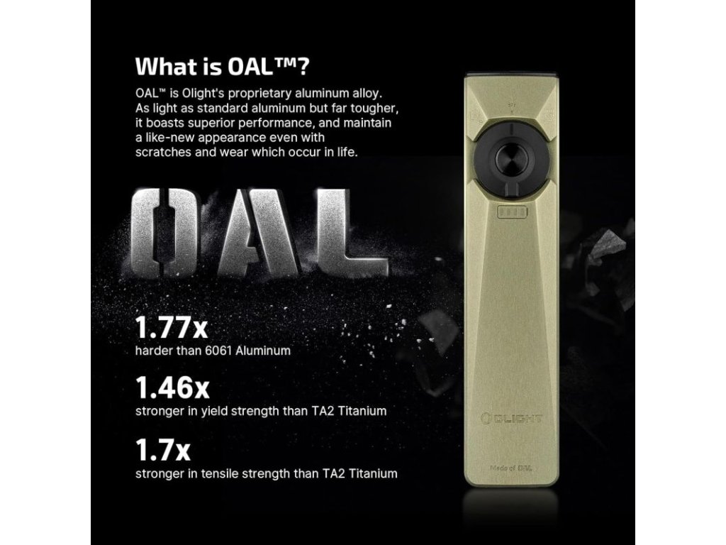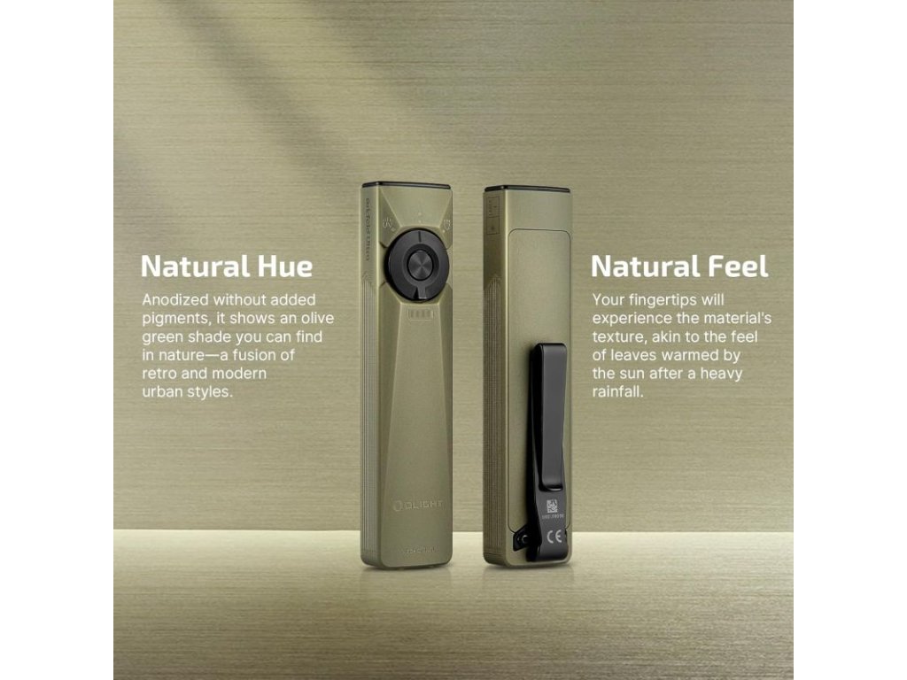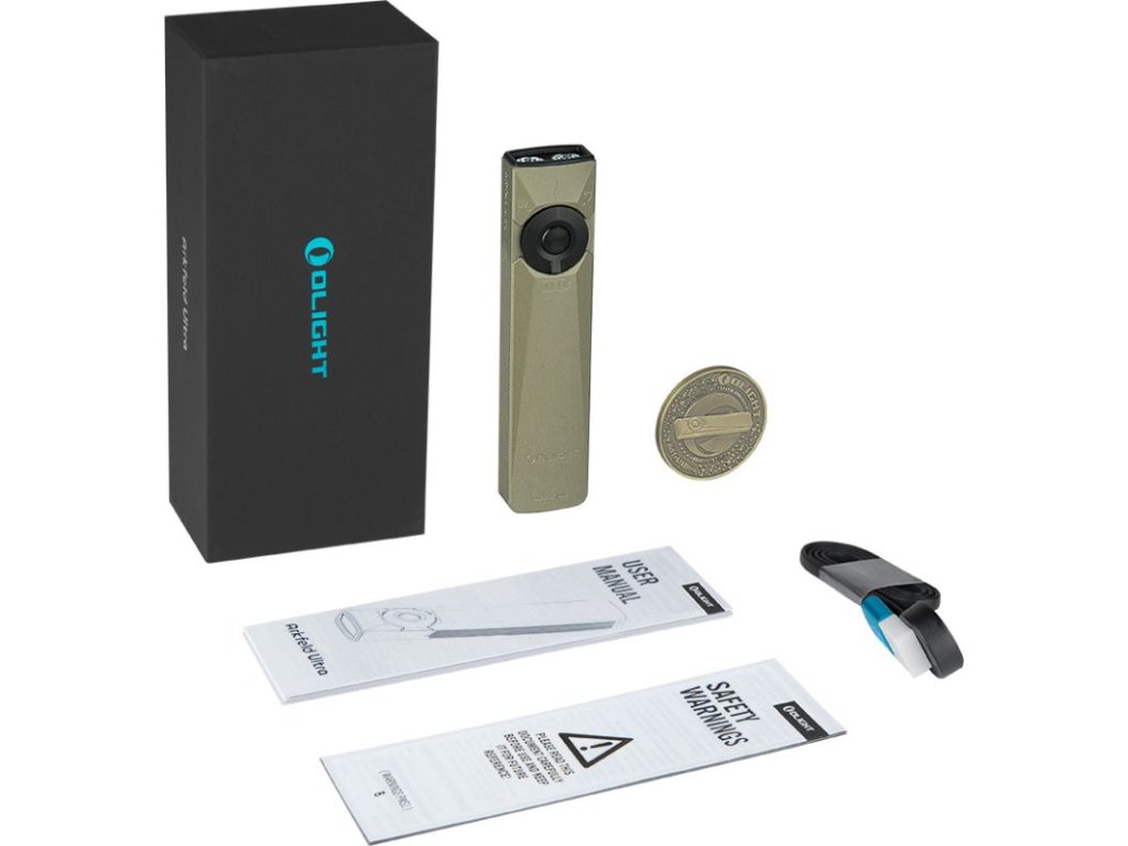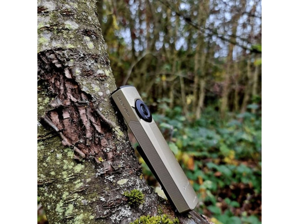 The LED flashlight Olight Arkfeld is a compact flashlight equipped with light, UV light, and laser simultaneously. The three light sources work well for everyday lighting, fun with pets, and presentation pointing. Arkfeld Ultra represents maximum versatility in this industry. A unique flashlight for everyday carry that combines durability, high performance, and modern design. Made from O-aluminum, a special material from Olight, which is twice as hard as the standard aluminum alloy 6061, ensuring the flashlight remains like new even after long-term use. Under the control button, there is an indicator that signals the battery charge level.